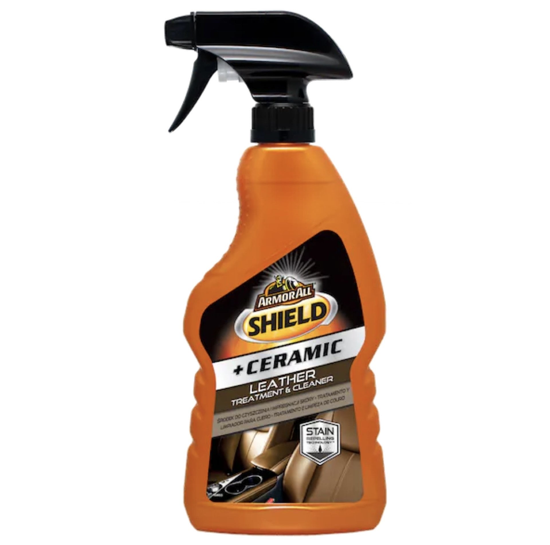 Armor All® Shield + Ceramic Leather Treatment & Cleaner is formulated to safely clean and deliver an optimized amount of Si02-based technology that provides even greater hydrophobic protection than untreated leather – without compromising the soft feel of leather surfaces.